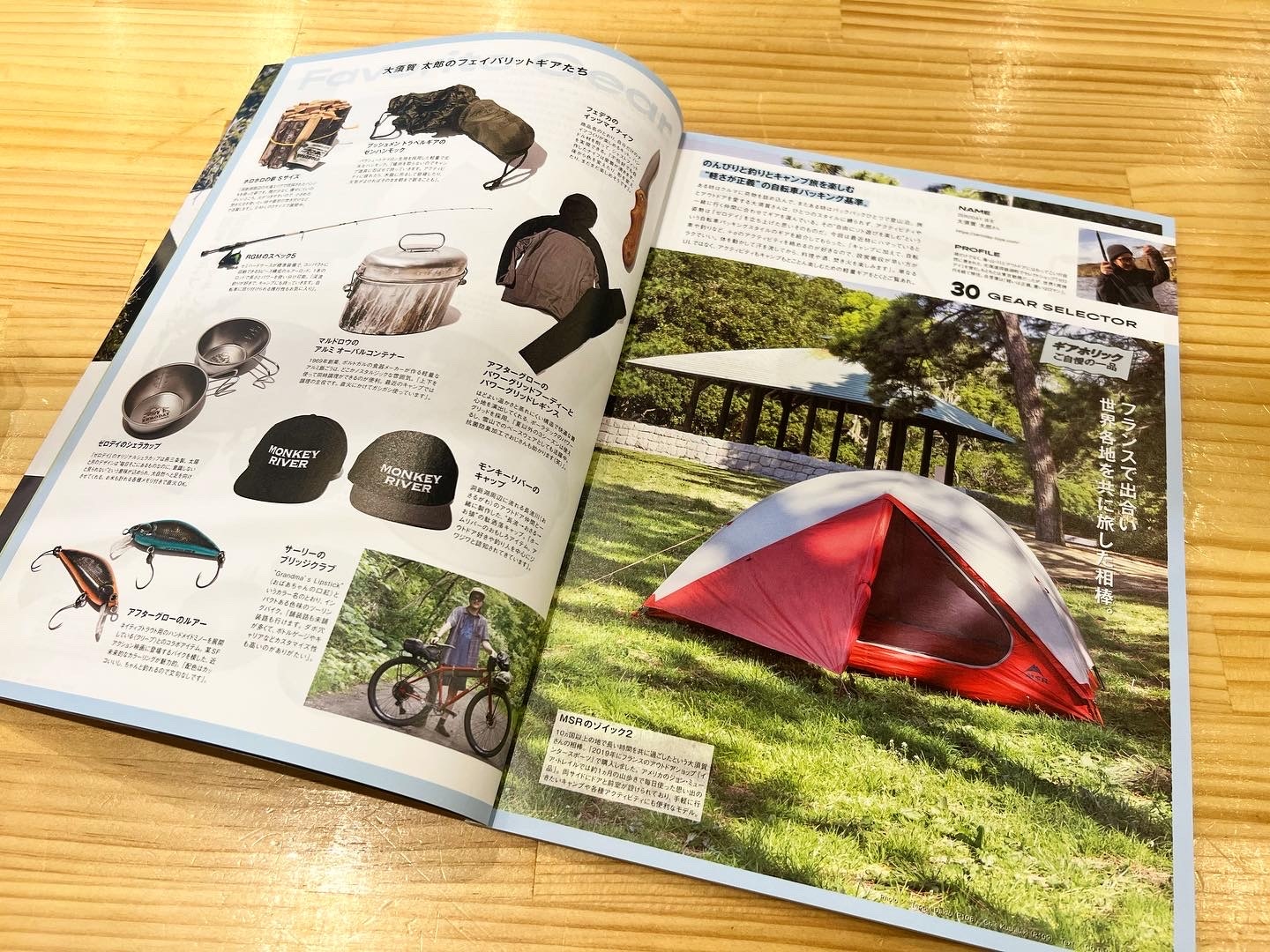 別冊GO OUT「CAMP GEAR BOOK vol.8」に、オーナーの大須賀太郎が選ぶお気に入りギアの数々を見開きでご紹介頂きました!