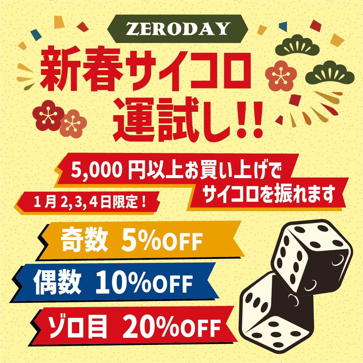 初売りの3日間はサイコロ運試し!5,000円以上お買い上げでサイコロを振るチャンスをゲット!