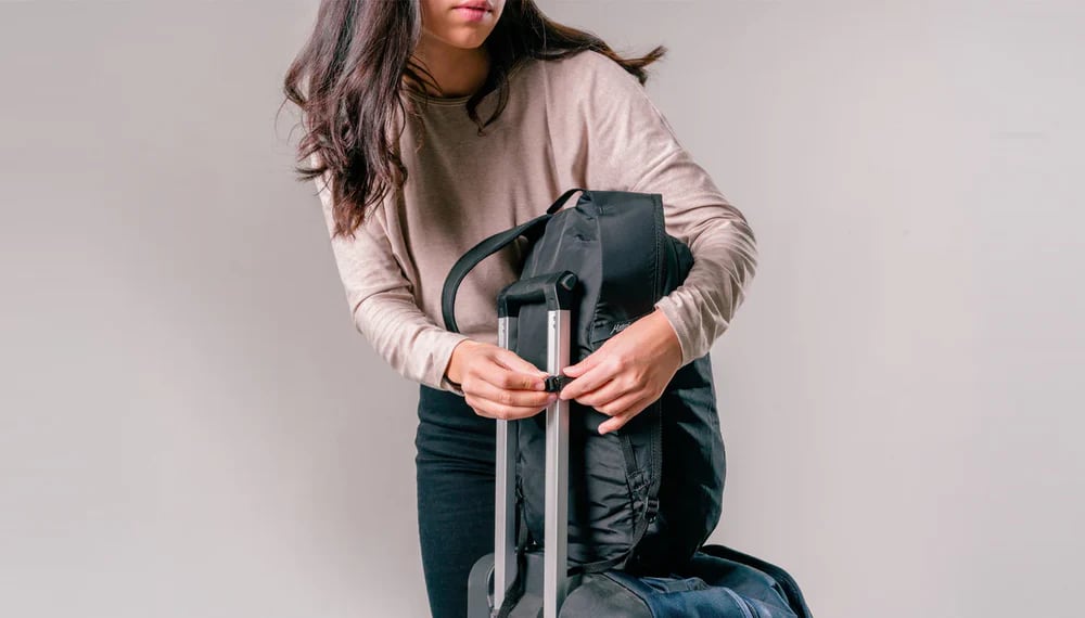 ・ラゲージパススルー(ホイールのハンドルに通して持ち運べる背面のスリット)