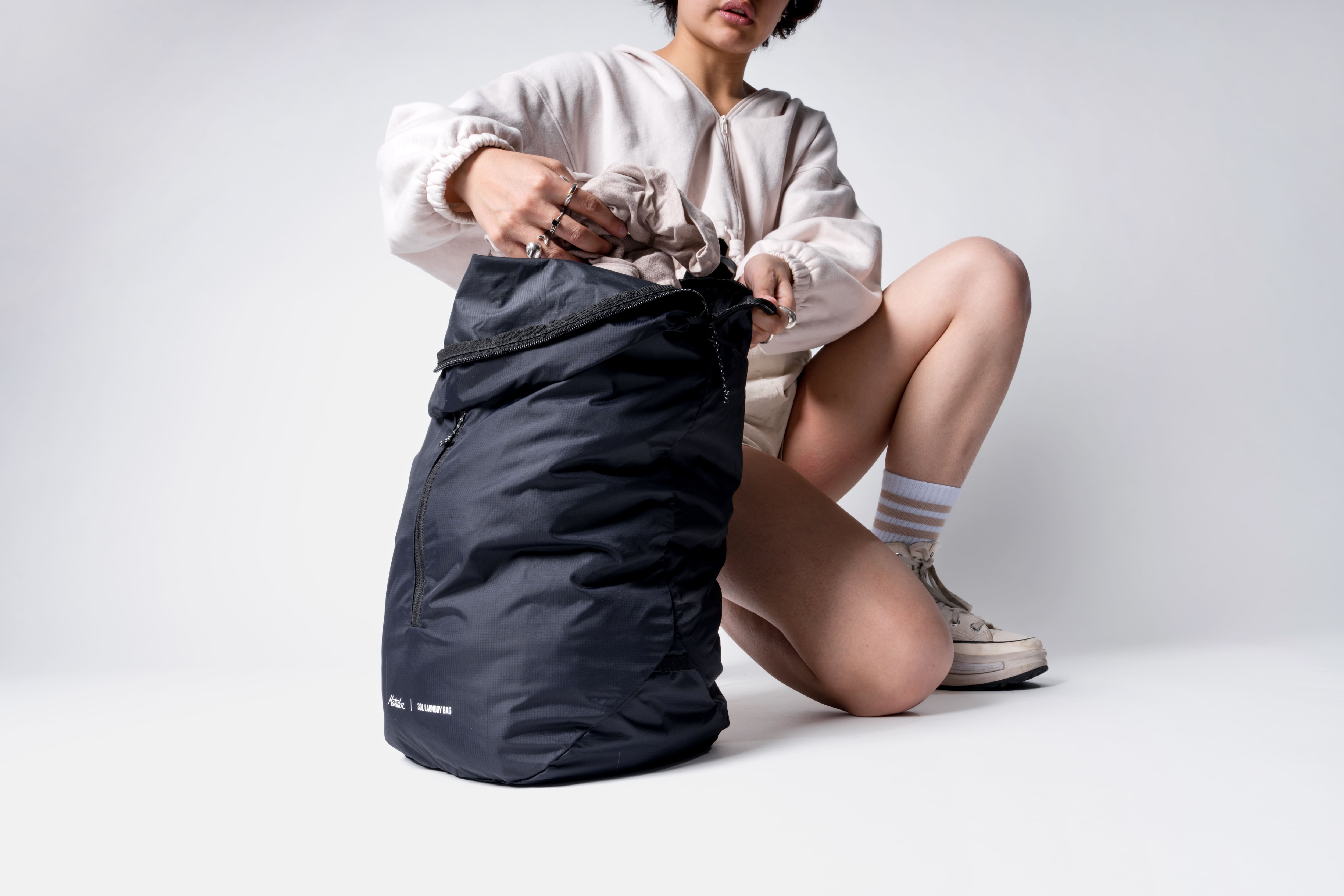 マタドールのパッカブルランドリーバッグは、空のときは消えてなくなり、満杯のときはその役割をしっかりと果たし、そして必要不可欠な機能だけを詰め込んだ、コンパクトで軽量なバッグです。