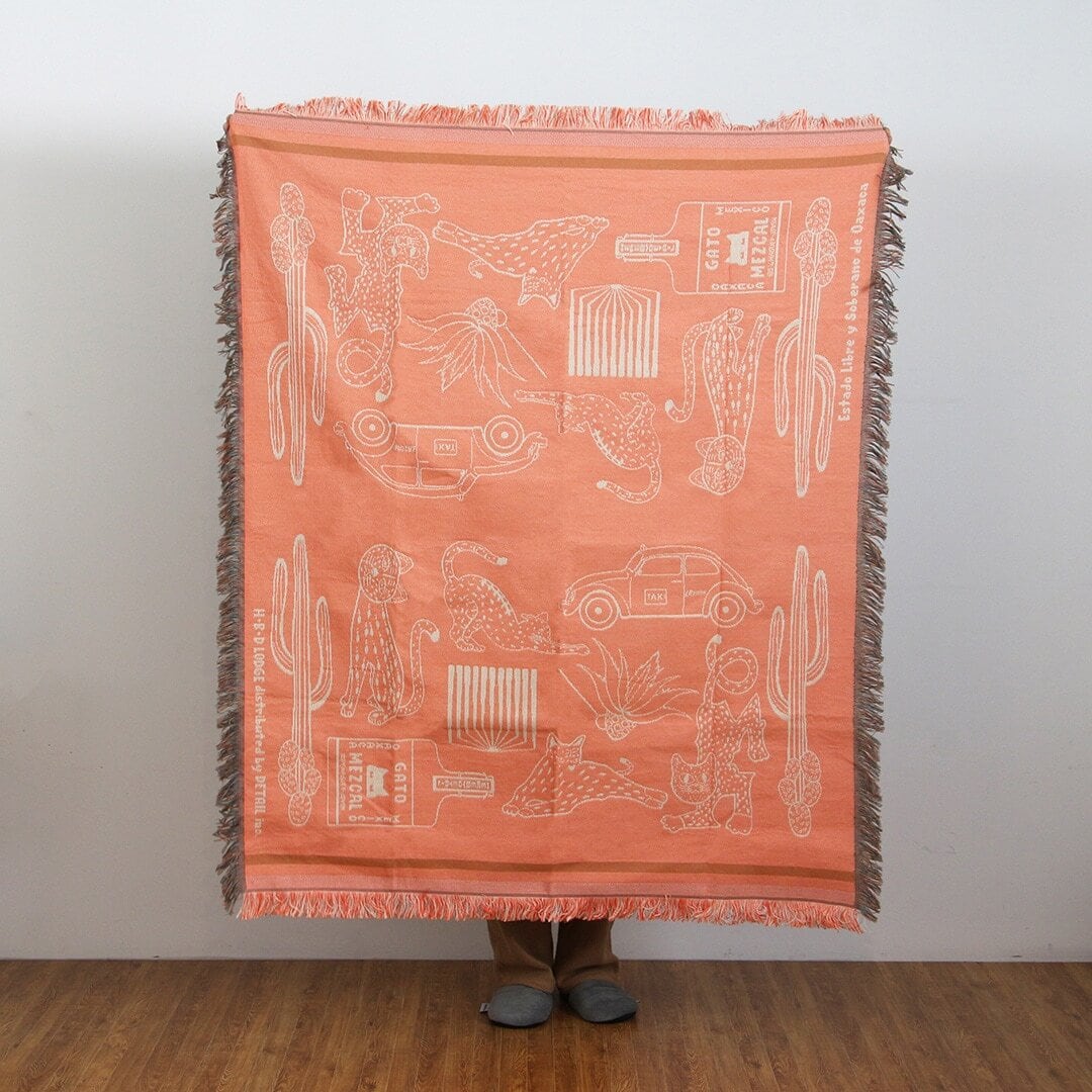 メキシコにまつわるモチーフと緩やかな時間の流れや自由奔放さを、スローケット1枚のなかに表現しました。