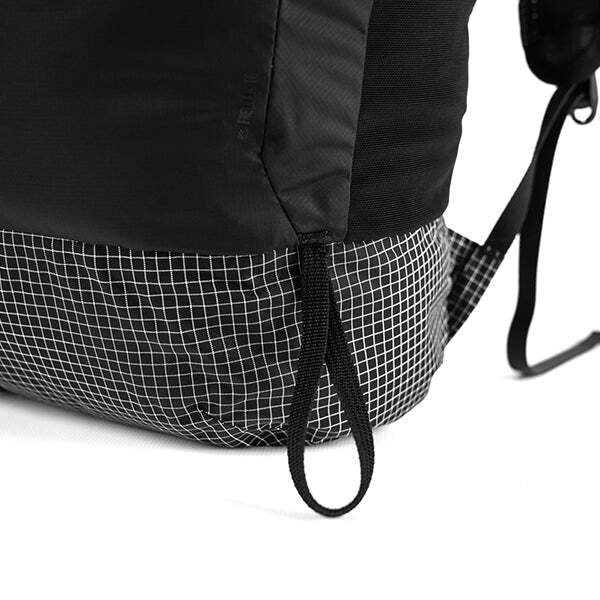 収納時はフロントポケットに入れて圧縮するか、付属のメッシュ袋にいれることでパッカブルになります。